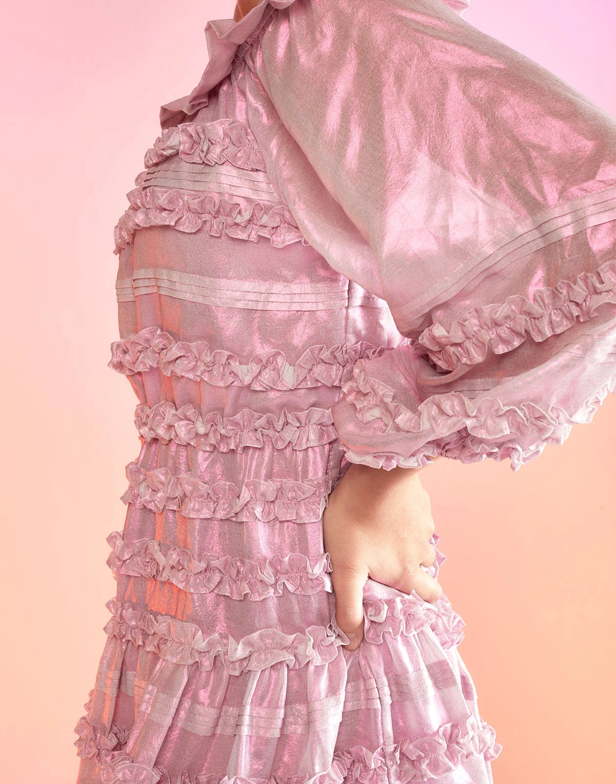 - 3/4 balloon ruffle sleeves with shirringÂ