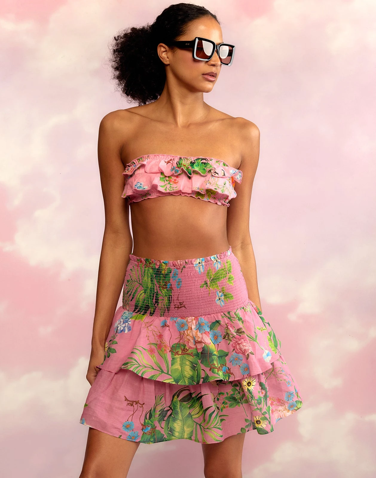 PinkĀ floralĀ ruffleĀ skirt.Ā