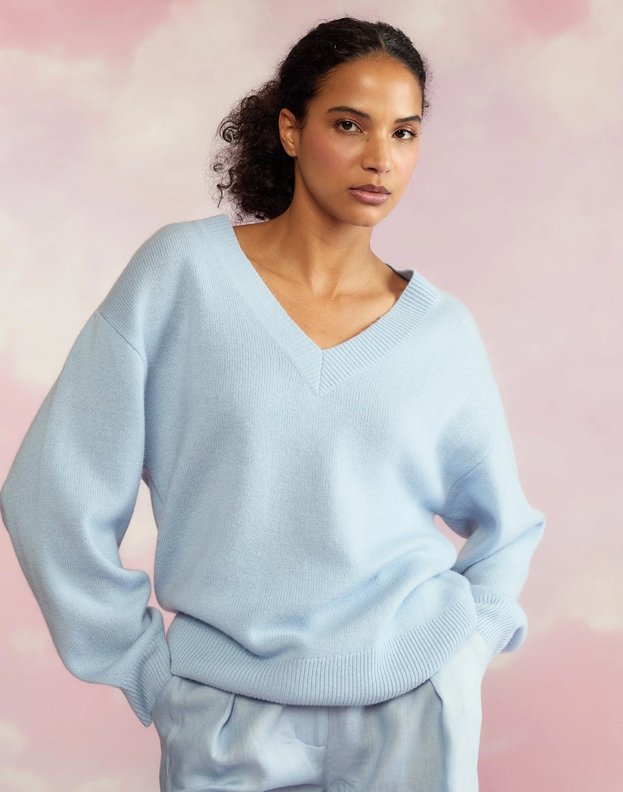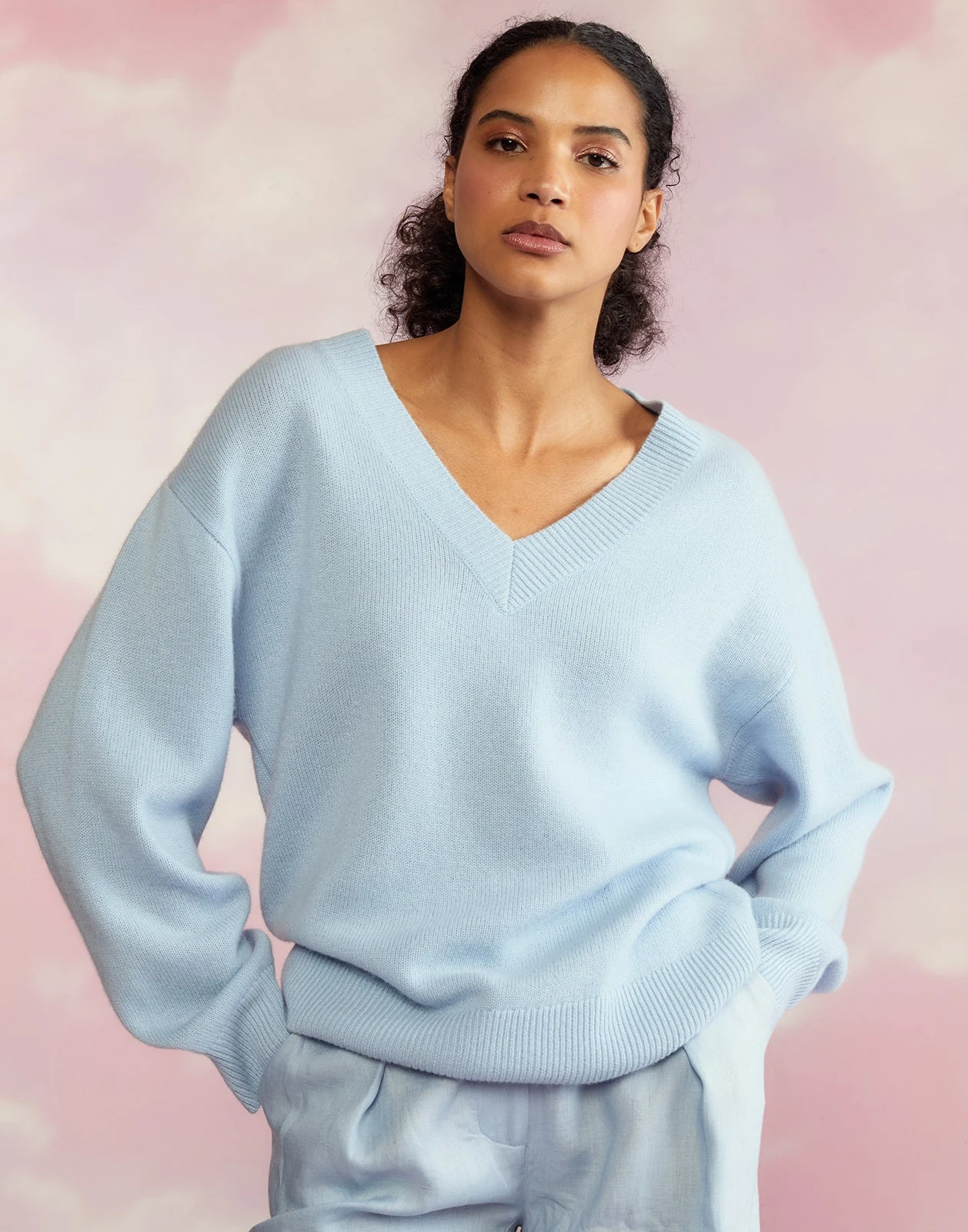 Oversized super soft lightweight v-crewneck sweater.Â